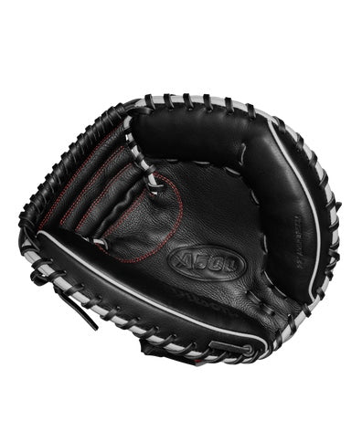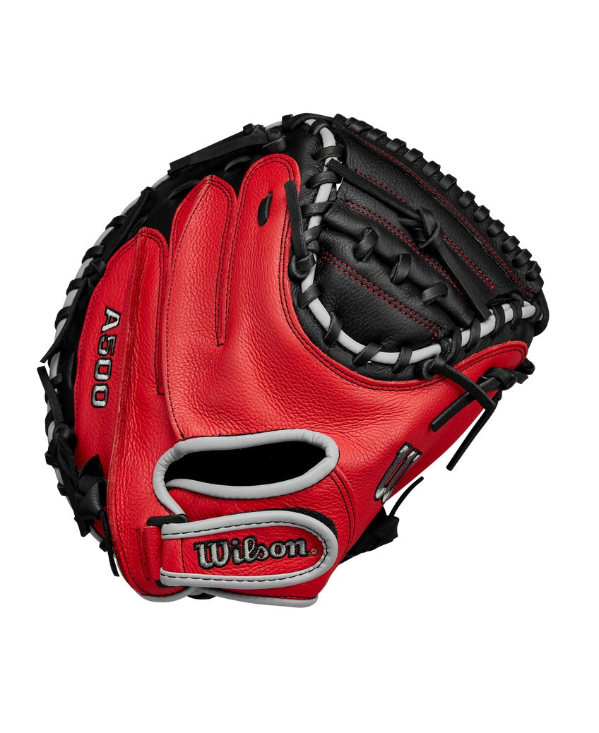 The 32” A500 baseball catcher’s mitt, ideal for youth ballplayers learning to receive and block behind home plate, features Closed One-Piece Web to corral the ball. A smaller hand opening and Velcro wrist strap helps create a secure fit for catchers, and the all-leather construction offers a sturdy and lightweight feel with Grey and Black Top Grain leather. Engineered for youth players, the A500 catcher’s mitt boasts an adjustable wrist closure for easy in-game adjustments and steady control of the glove.