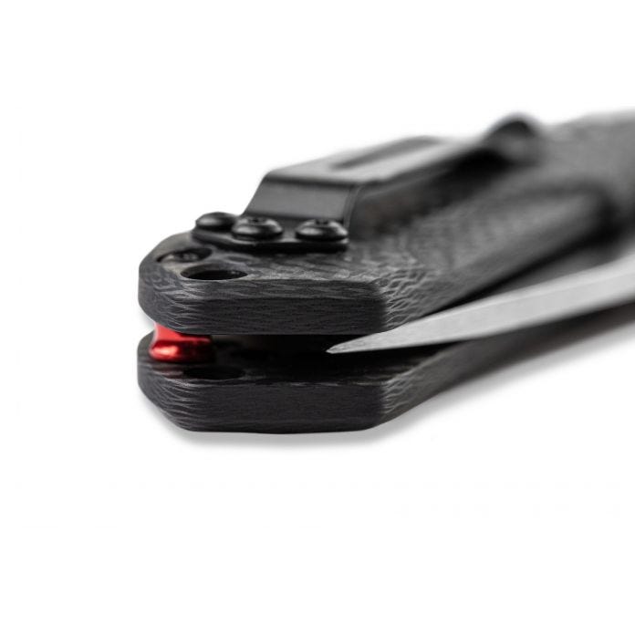 Kitted out with a CPM-S90V blade, True Red barrel spacers and thumbstuds, this