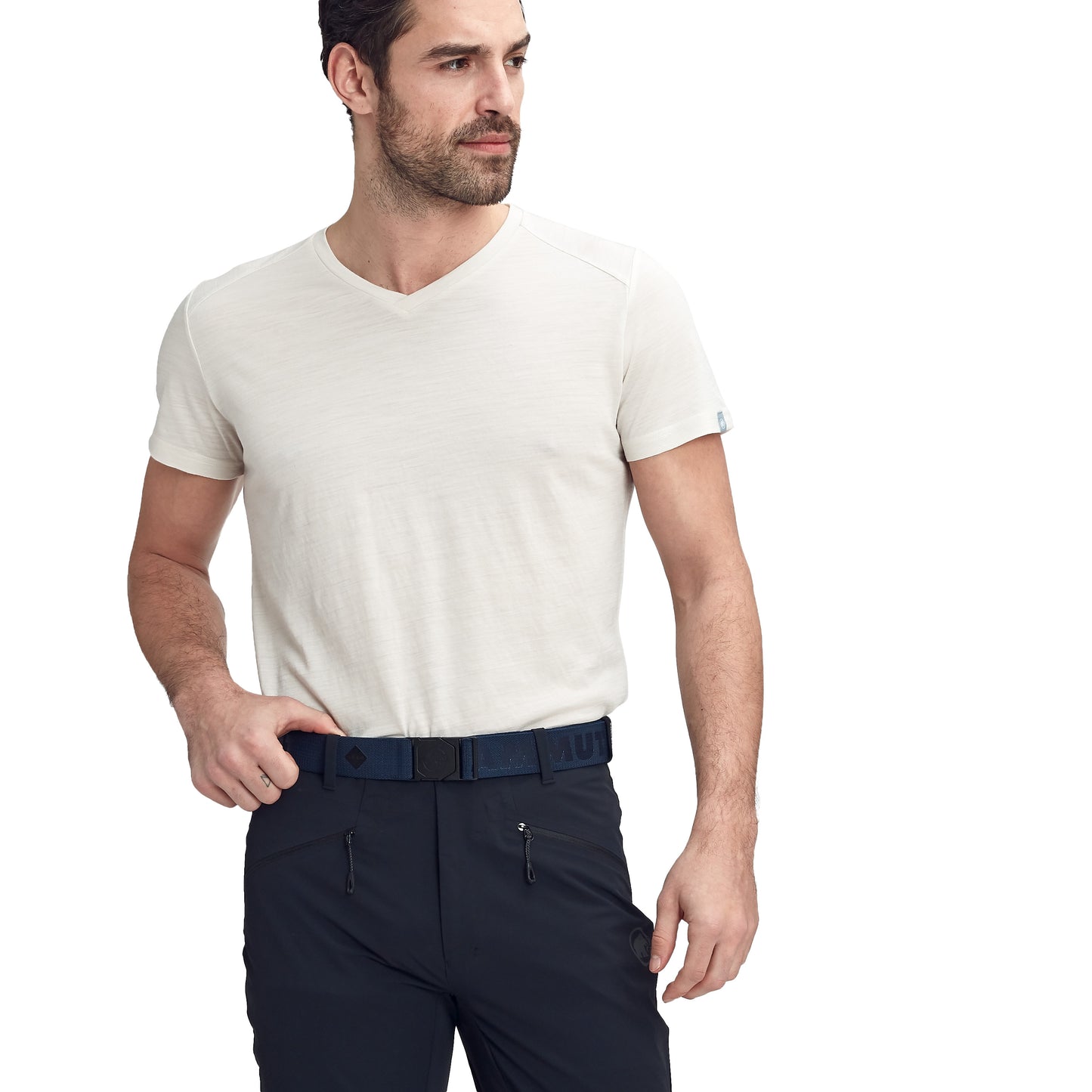 Description Alpine Belt. A lightweight and durable companion in the mountains. A practical accessory for the airport. With its exceptionally flat and light plastic buckle, the Alpine Belt offers a light weight and a material that will pass safely through any security check. It impresses with a robust and elasticated woven band with various MAMMUT logo details. The infinitely adjustable size allows easy handling. excl. sales tax and shipping Features