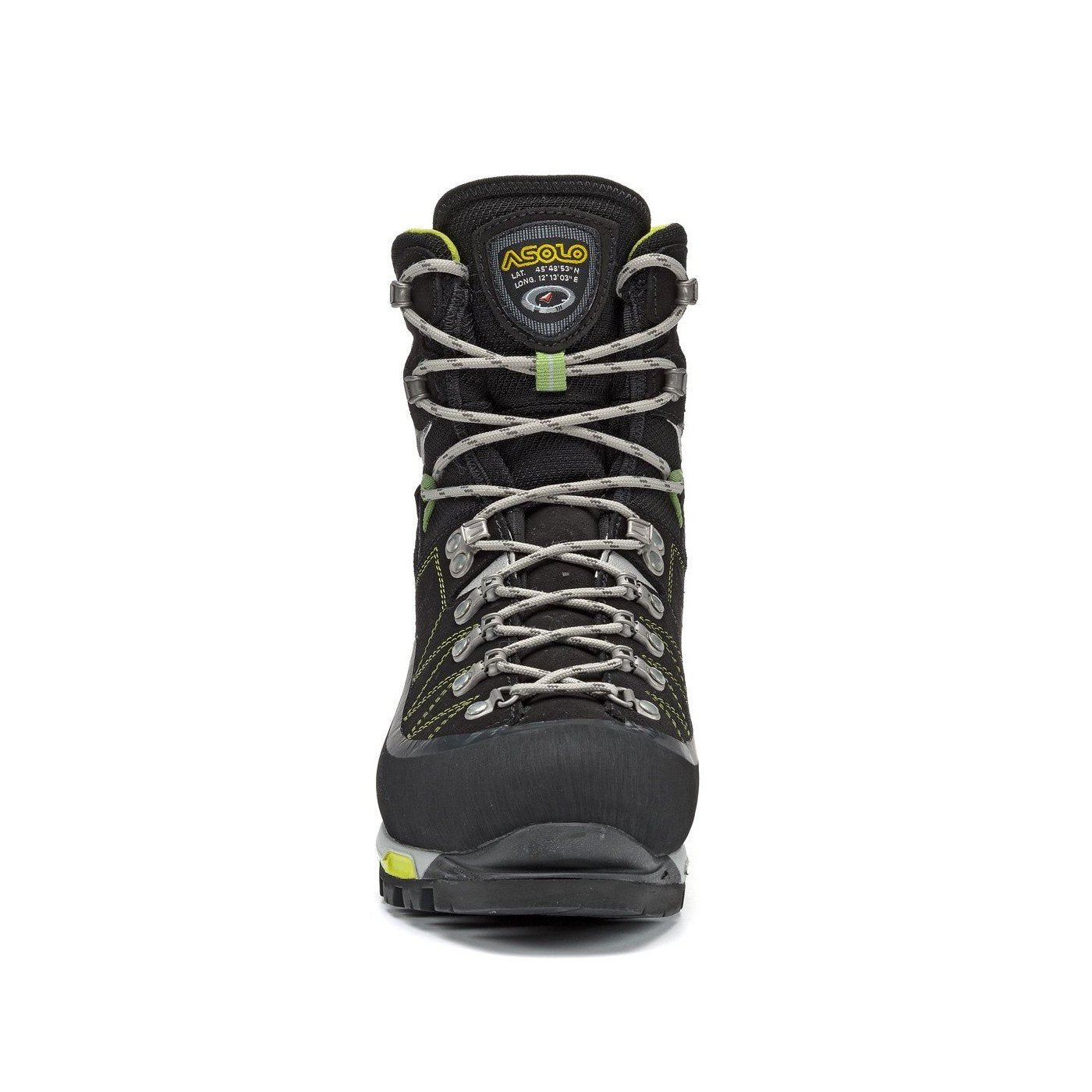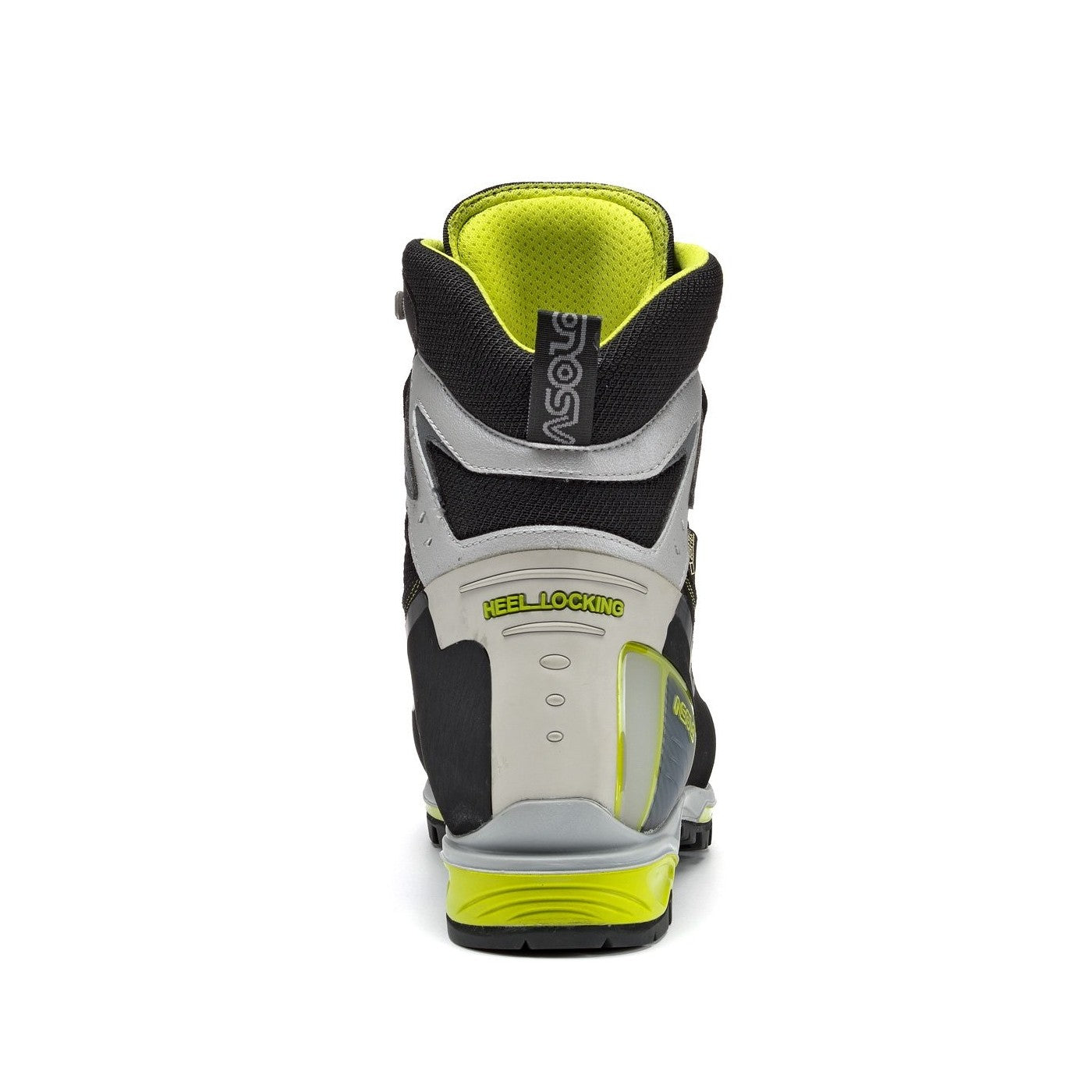 One piece water-resistance Perwanger leather offers protection and comfort, while the Gore-Tex Insulated Comfort Footwear lining guarantees insulation, waterproofness and breathability. The outsole package consists of a Pu frame that guarantees stability, rigidity and cushioning, while the Asolo/Vibram Vertical sole has a self-cleaning design and offers maximum support, grip and torsional stability adaptable for the automatic crampons.