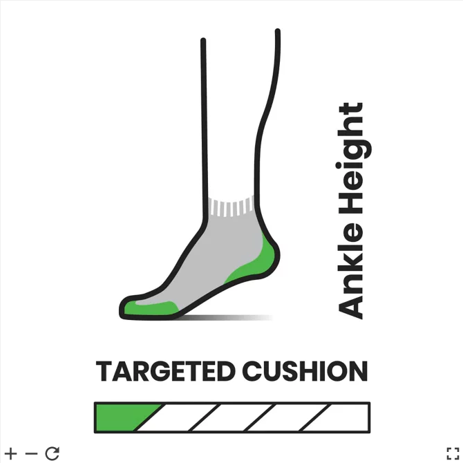 Athletic socks that work as well during a high-intensity workout as for an afternoon stroll around town, our Athletic Targeted Cushion Ankle Socks are designed for comfort and durability. They’re built to fit, with the stay-put elasticized arch and ankle support, and the sole is reinforced to combat wear and tear. Plus, the sock offers targeted cushion on the ball and heel of the foot, where you tend to endure the hardest impact. And because it’s made from responsibly sourced Merino wool, this sock offers natural odor control and breathability, helping you feel good so you can enjoy whatever the day’s activities bring.