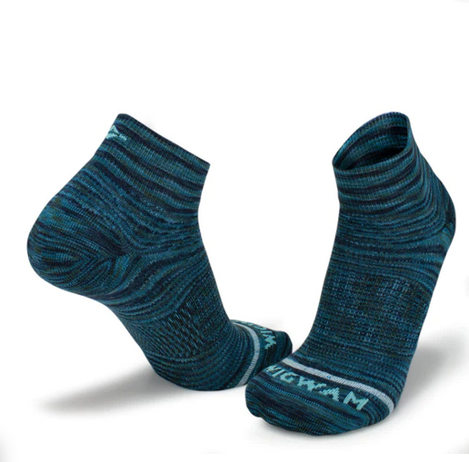 SynchroKnit(R) patented construction Lightweight zoned cushion in heel and toe Seamless toe seam