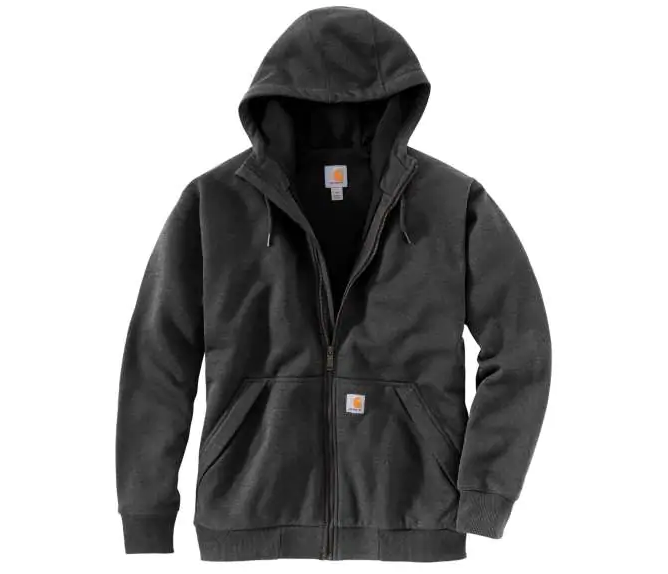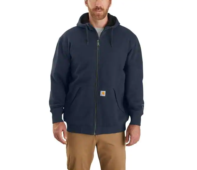 Men's water-repellent, midweight sweatshirt for outdoor work Workday or weekend work, this men's zip-hoodie combines the familiar comfort and easy range of motion of a sweatshirt with the insulated feel of a jacket. It's made with a water-repellent coating, so you stay dry in light rain.