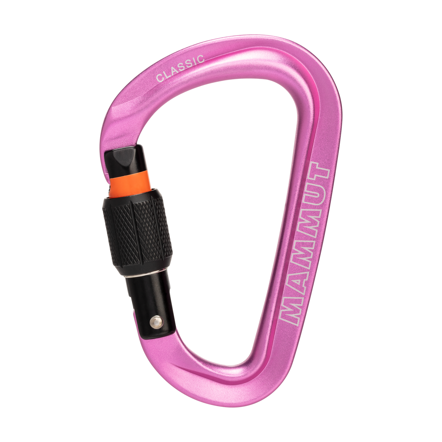 The Classic HMS Screwgate is a medium-size versatile pear-shaped carabiner. It is suitable for constructing belay stations and for belaying using an HMS knot or belay device; it allows the rope to run smoothly and reduces wear. The screw locking is easy to operate even in icy or dirty environments. The key lock nose ensures easy clipping and unclipping without snagging. The orange marking is an additional safety feature, acting as a warning if the carabiner is not screwed closed. read less