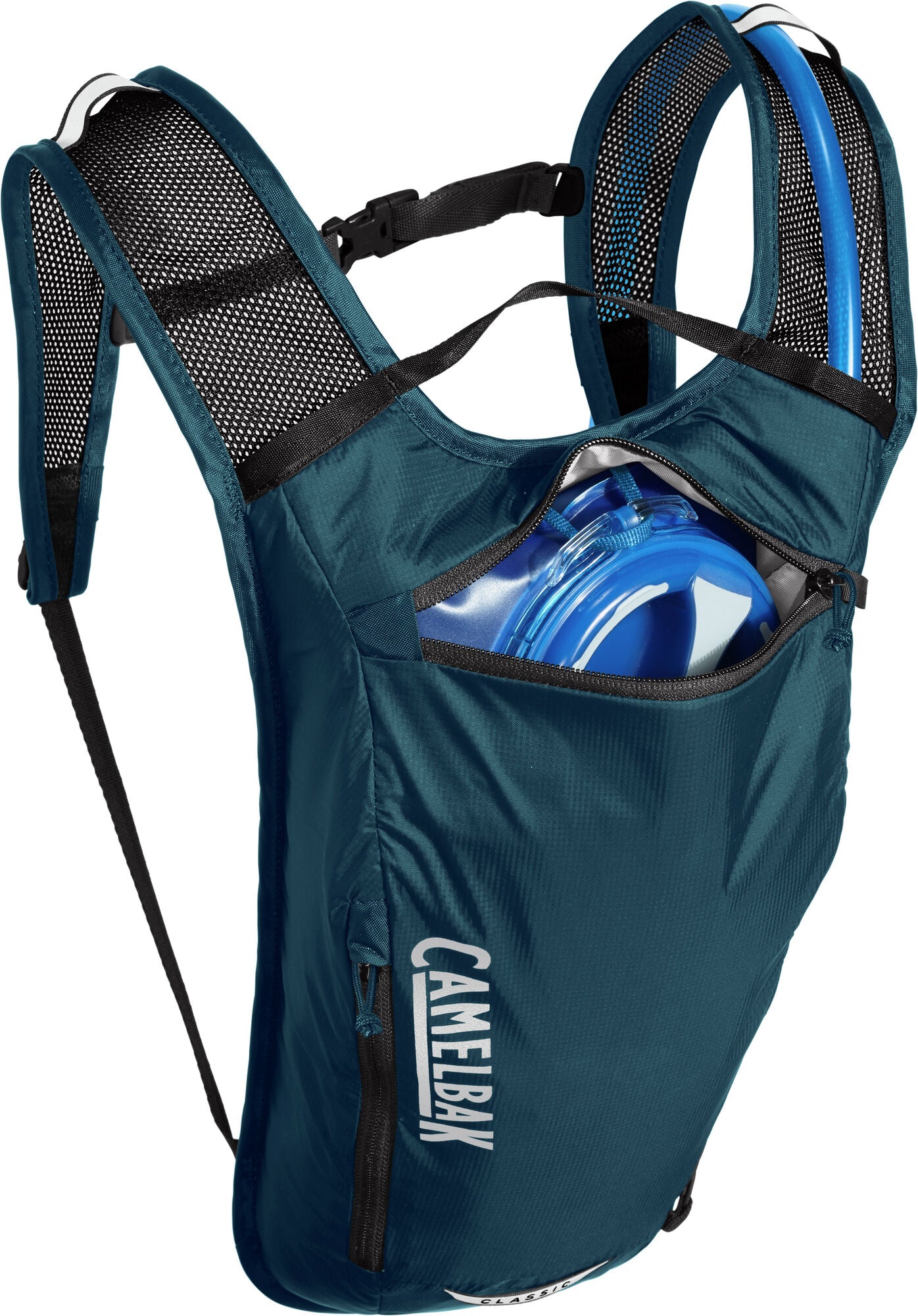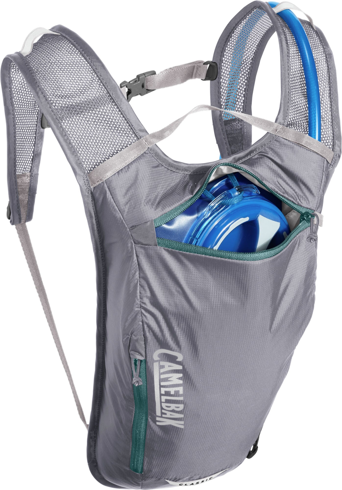 We just improved upon a classic - the Classic™ Light is exactly what your everyday ride has been missing. Lightweight meets heavy-duty for a pack that is durable, adaptable, and comfortable for any length adventure. The sleek design features a 2-liter Crux® Reservoir with Quicklink™ disconnect and an extra 2-liters of cargo space. The Air Support™ Light Back Panel and a ventilated harness ensure effective cooling and ultimate breathability. The bungee overflow allows you to quickly stash an extra layer without missing a beat. With a secured zippered pocket to store your keys and phone, plus an adjustable sternum strap for a custom fit and increased stability, you have everything you need to hit the trail, stay hydrated, and have fun out there.