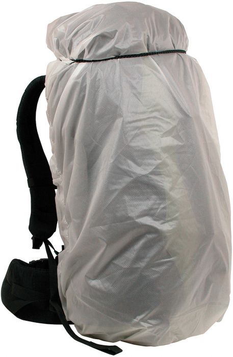Cloud Cover is made of 30-D Sil Cordura Nylon Ripstop. XS: 1800-2500 cubes (29-41L) weighs: 3 oz., SM: 2500-3300 cubes (41-54L) weighs: 3.4 oz., MD: 3300-4000 cubes (54-65L) weighs: 3.9 oz.