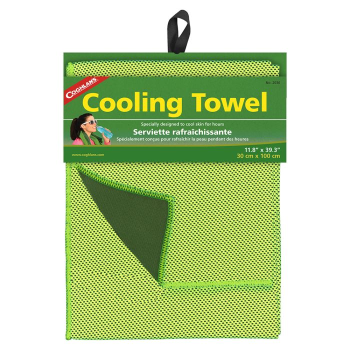 Keep cool in hot weather with Coghlan's Cooling Towel. Using a process called constant evaporation, this towel keeps your skin cool for hours. To activate simply dampen towel with water when dry, then shake or snap already moistened towel to reactivate. The fabric is not chemically treated, so the cooling effect will never wash out. Great for the beach, boating, golfing or trail hikes. Dimensions: 11.8" x 39.3” (30 cm x 100 cm). Color: Lime green/forest green. Storage bag included.