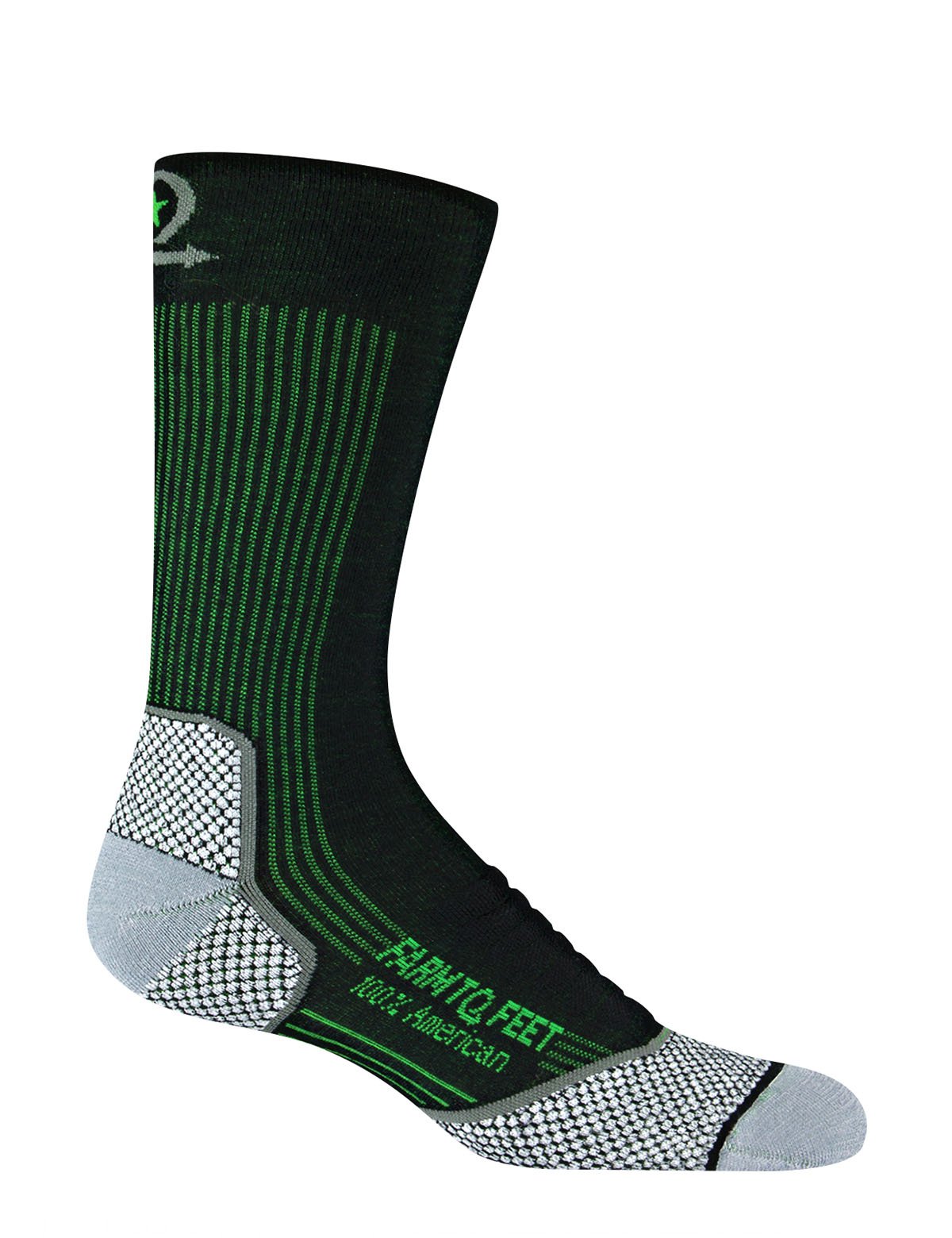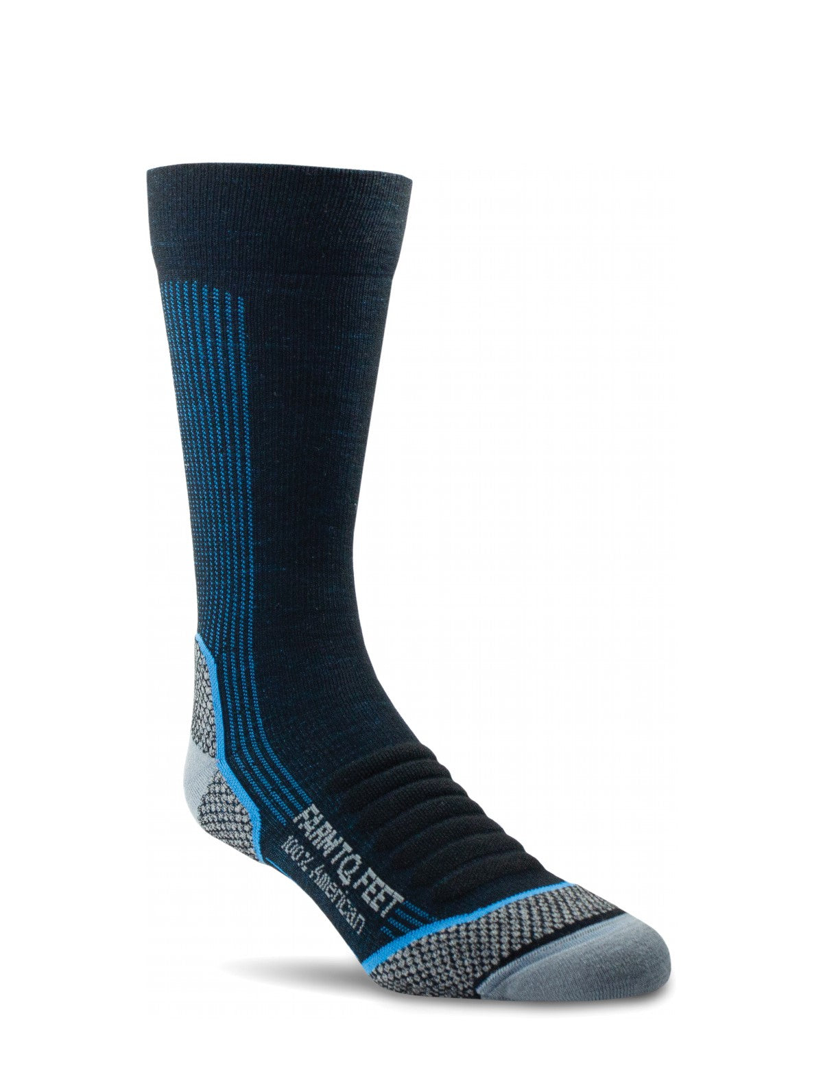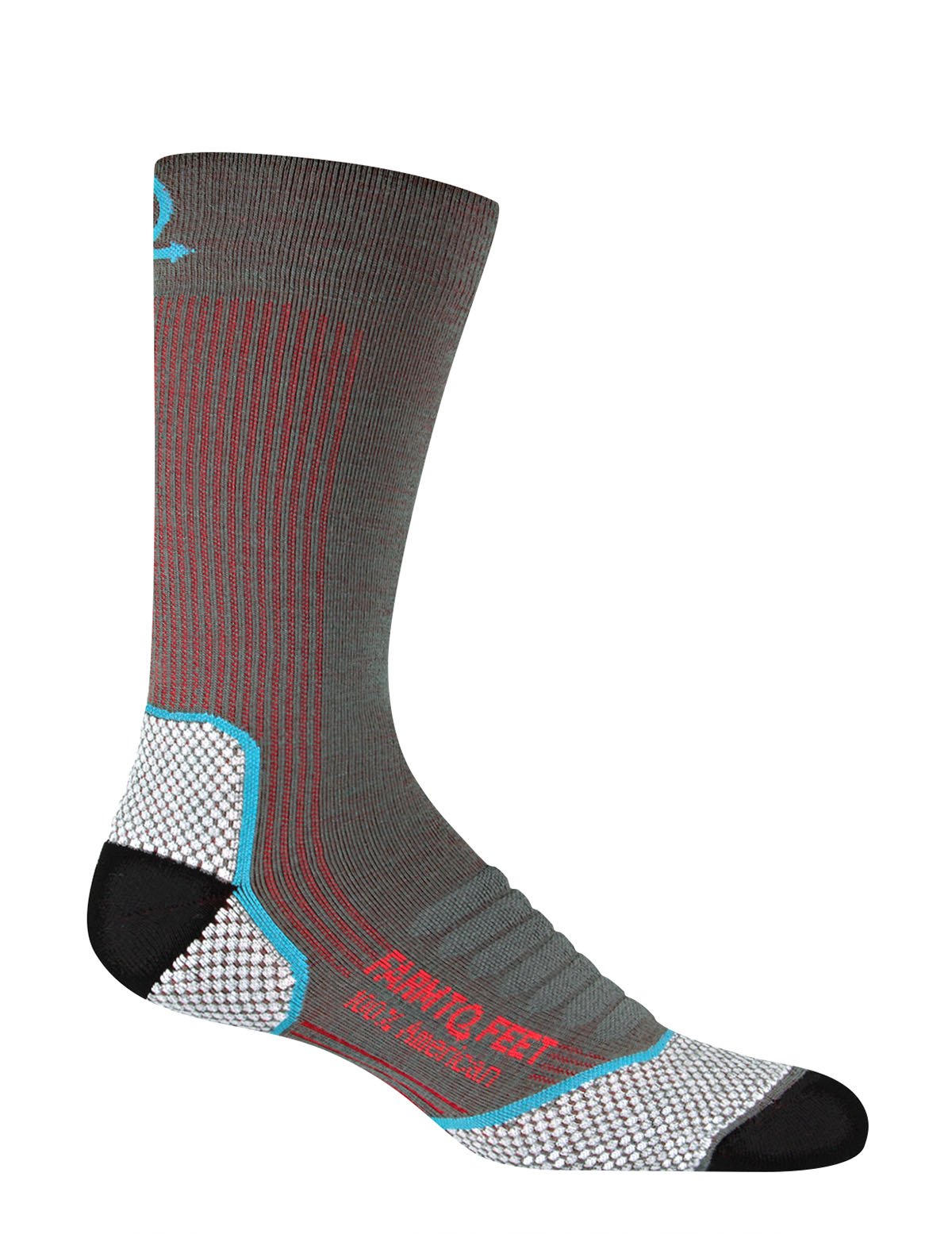 Merino wool is soft, itch-free, naturally odor- and bacteria-resistant, cool in the summer and warm in winter. We source our 100% U.S. grown merino wool exclusively from sheep raised by American farmers on American farms. - Hidden Nylon Plaiting