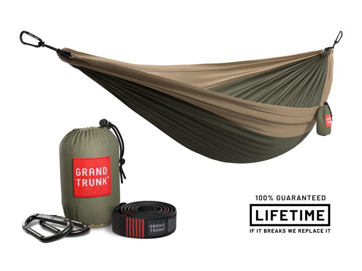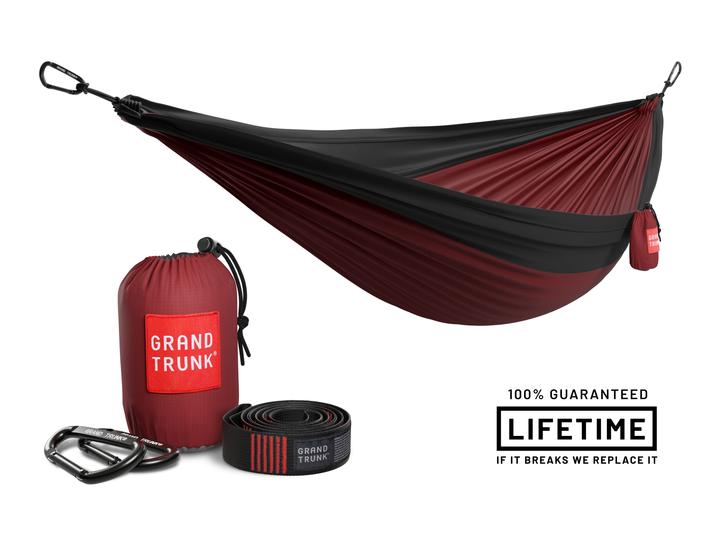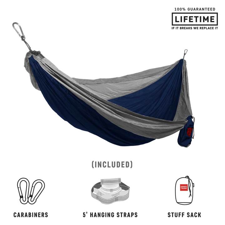 Getting away is good for the soul. Whether you’re hiking on the other side of the world or taking a break in your backyard, our packable two-person parachute nylon hammock is ready to help you take a load off while you plot your next adventure. With the included carabiners and five foot hammock straps, this affordable all-in-one hammock kit is ready to hang. No need to purchase extra straps or rope.Features