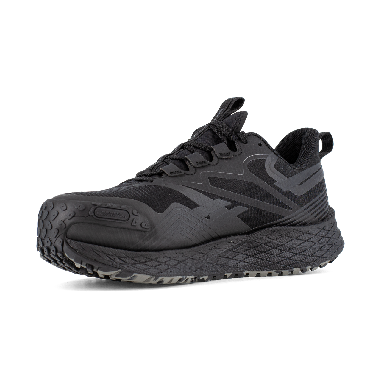 Type Athletic Work Shoe Toe Composite Toe Upper Microfiber, Textile, and TPU Color Black Lining Microfiber Lining Insole Molded Polyurethane Foam Outsole Floatride Energy Midsole with Lugged Slip Resistant Rubber Skin and Toe Bumper Special Features 100% Non-Metallic, Extra Wide Toe, Dual Resistor (SD10), Floatride Energy