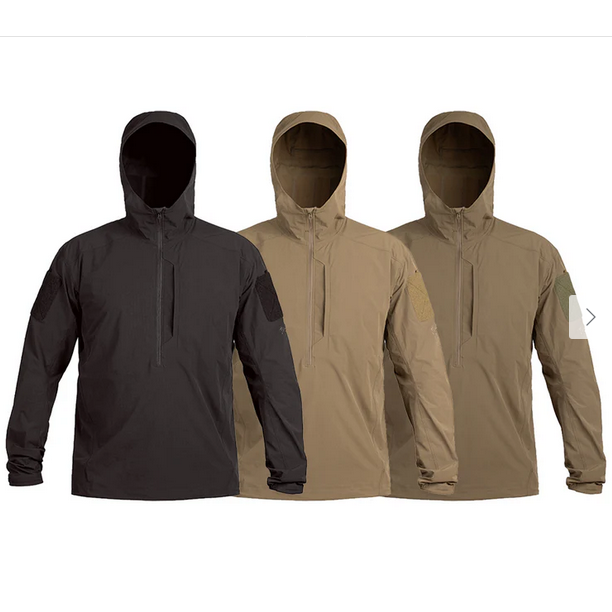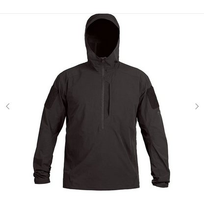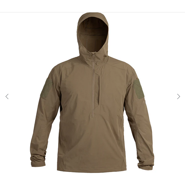 A superlight, breathable softshell pullover providing weather protection for a variety of high output operational scenarios and environments.