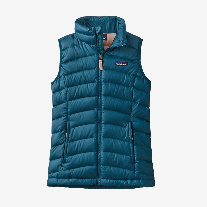 Ultralight and warm, the Girls’ Down Sweater Vest has a 100% recycled polyester mini-ripstop shell that resists light moisture; it is insulated with 600-fill-power 100% Recycled Down (duck and goose down reclaimed from down products). Fair Trade Certified™ sewn.