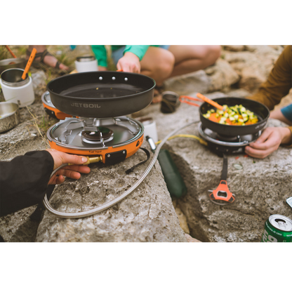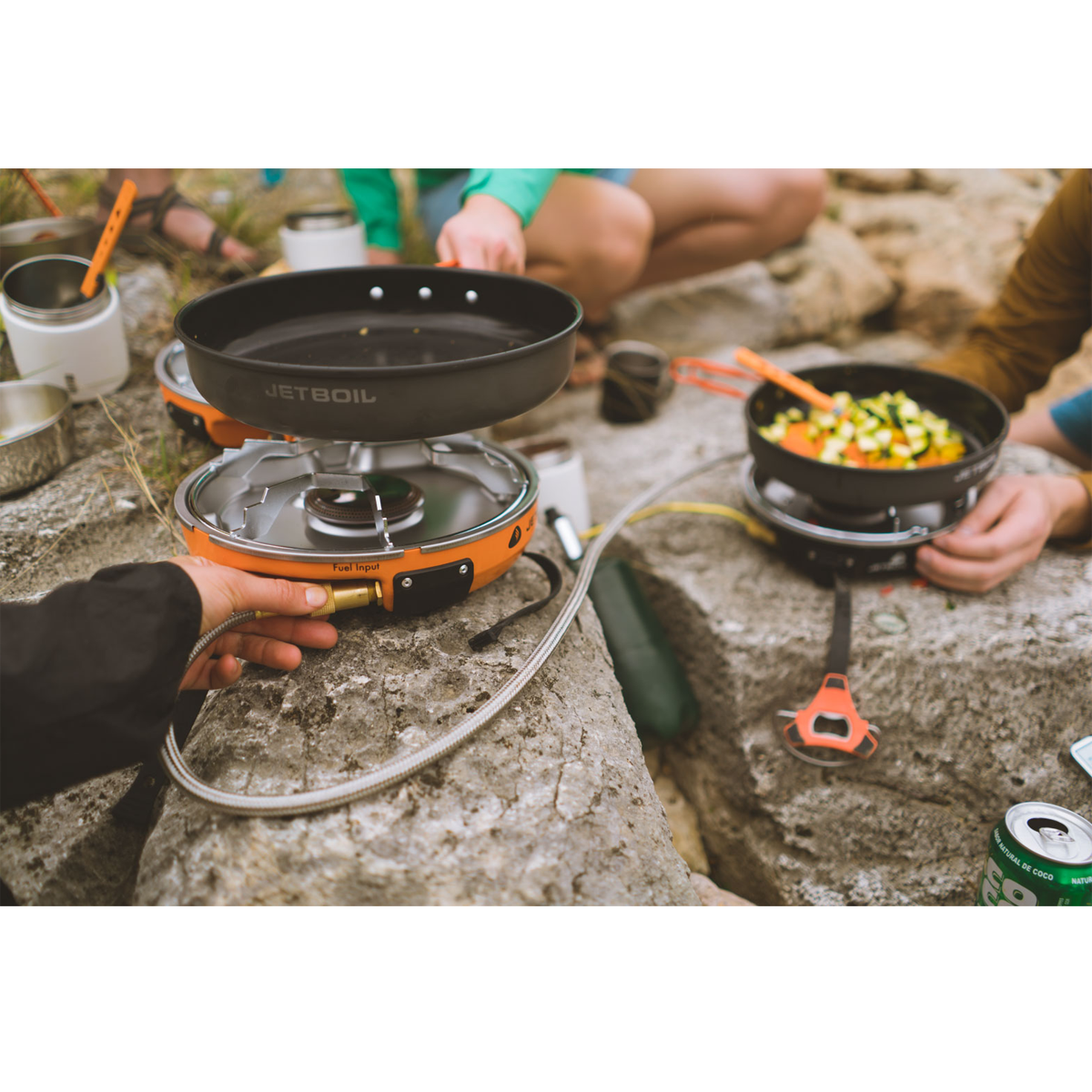 Retrofit your backcountry repertoire with the world’s first modular, expandable basecamp cooking system. Use it as a standalone stove, or couple it to other JetLink compatible stoves via the JetLink Port. A beastly 10,000 BTUs makes boiling water a jif, and incomparable simmer control gives you the flexibility to boil fast or simmer slow.