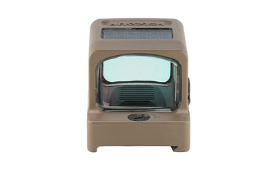 The HE509T-GR X2 FDE is an enclosed reflex optical sight designed for pistol applications. Features include a Titanium housing, Holosun's Super Green LED with up to 50k hours battery life, Multi-Reticle System, Solar Failsafe, and Shake Awake. The included 509T RMR adapter plate is not compatible with ZEV or Shadow Systems style RMR interfaces.