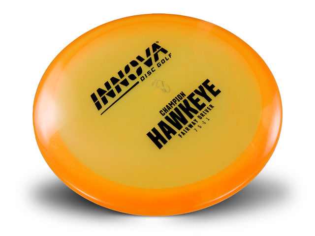 The Champion Hawkeye offers exceptional glide with a bit more fade than our Star model. The Champion Hawkeye will be a workhorse in your bag through countless rounds without significantly changing flight characteristics. For predictability and accuracy in a fairway driver, grab the Innova Hawkeye. At faster speeds, it flies straight with exceptional glide. For players with less power, it has a consistent, mellow fade. All of this adds up to accuracy... the hallmark of the Hawkeye.