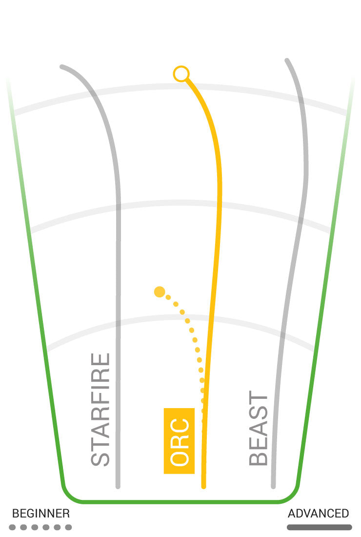 The Orc is one of our most popular, straight flying distance drivers. It combines speed with accuracy for very long range, predictable flights. Great for straight ahead power shots and long hyzer shots. Suitable for powerful throwers, but still manageable by beginners in lighter weights.