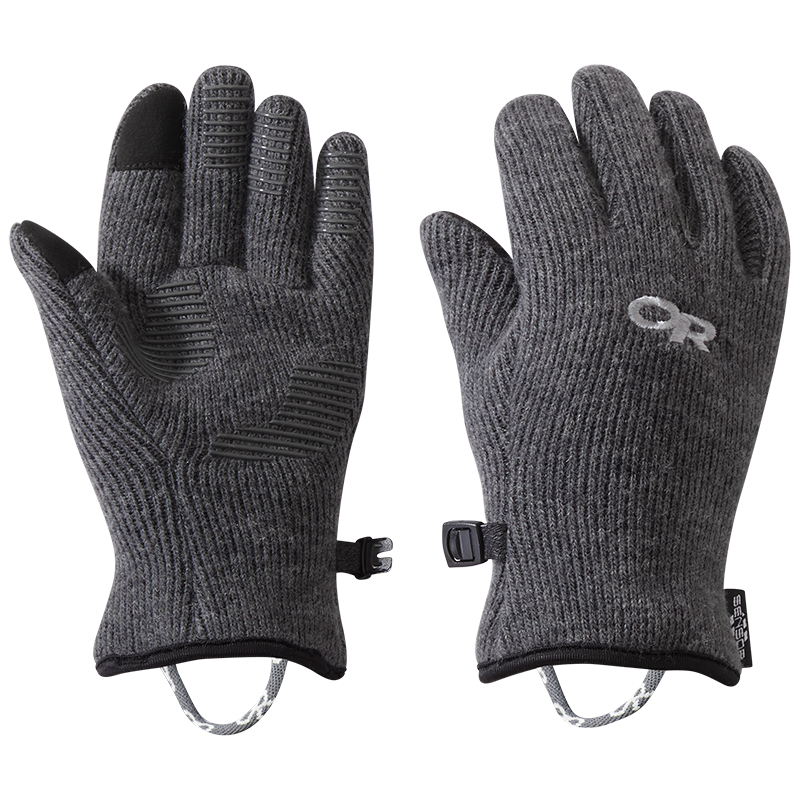 Keep your hands warm on a long day of cold-weather trekking with the Flurry Gloves. Constructed of Alpin-Wool™ Plus fabric, the wool/nylon exterior pulls moisture away from the skin, while the soft fleece interior provides the ultimate in cozy, warm comfort. Motion Wrap™ palm construction, a snug, stretchy fit and touch-screen compatible silicone prints on fingers combine for excellent dexterity and grip.