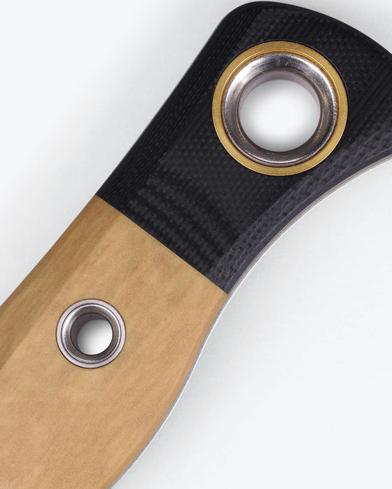 For clean, effortless cuts, the 4050-02 Meatcrafter® is your go-to knife for precision processing in the field and portioning, deboning, and trimming your favorite cuts in the kitchen. Thanks to our proprietary SelectEdge® technology, the upswept 6” trailing point blade delivers exceptional push-cut performance, while its engineered blade flex allows for greater control while deboning or filleting. The 4050-02 Meatcrafter® variant features a CPM-154 blade with a stonewash finish, a maple valley Richlite handle, and a black G10 bolster accented with a gold ring. Over time, Richlite®, a paper composite material, will develop a natural patina over time, altering the original color of the material. "Patina” is a natural occurrence in the product that can either darken or lighten depending on exposure to light.