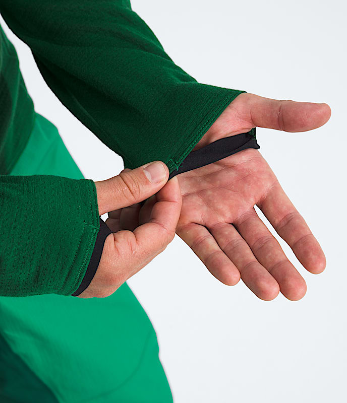 - Flat-sewn elastic cuffs with integrated thumb loops