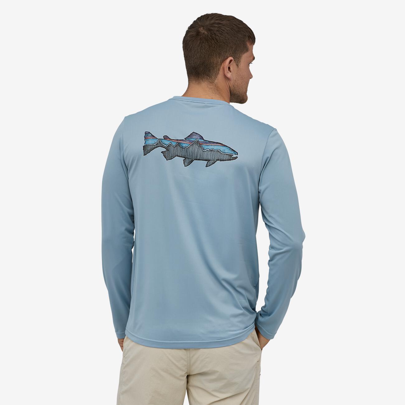 The best of both worlds: Our Long-Sleeved Capilene® Cool Daily Fish Graphic Shirt combines a comfortable T-shirt fit with a lightweight, quick-drying and fast-wicking 100% recycled polyester fabric that offers UPF sun protection and HeiQ® Fresh durable odor control; its original fishing-inspired graphics remind you where your true interests lie. Fair Trade Certified™ sewn.