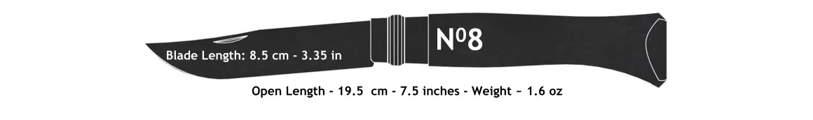 The No8 is the most sold and versatile size in the ever growing line of Opinel folding knives. This knife is small enough to be used as a pocket knife and its 3 1/4" blade prevents it from being considered a weapon in most states (please check with your state).