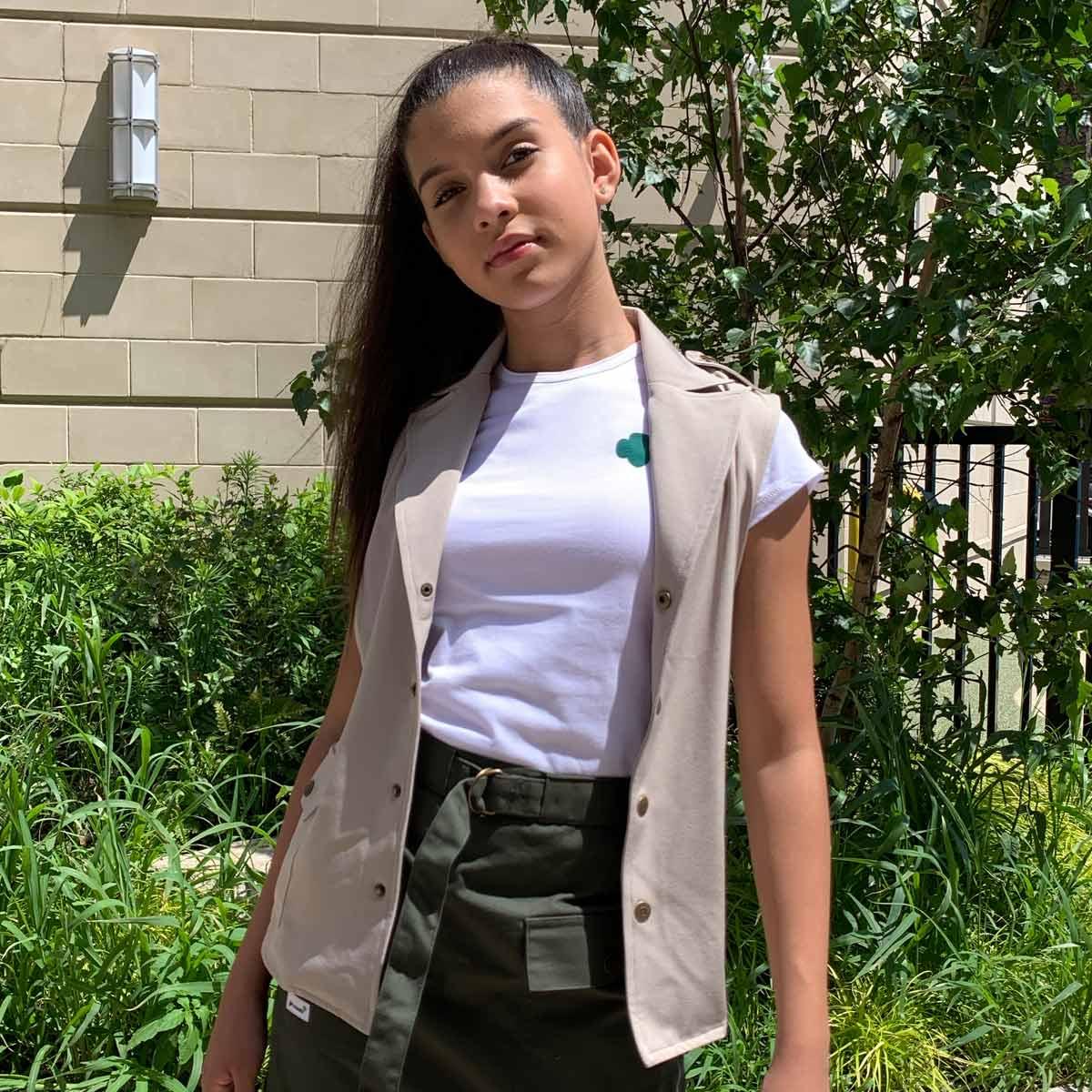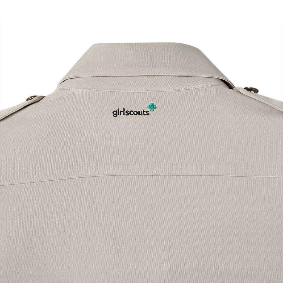 Need more pockets? We've got you covered! Add your Girl Scout insignia and all those hard-earned badges, or simply wear this vest as a lightweight layer. Designed for utility and style, it features two zipper pockets, two cargo pockets with snap closures, and an elastic cinched waist. Soft woven twill with 4-way stretch makes this vest a comfortable fit for everyday adventure. Features epaulet detail on shoulders and notch lapel collar. Embroidered Girl Scout Servicemark on back at neck. Khaki with brushed goldtone hardware. Polyester/spandex (4%) woven twill. Imported.
