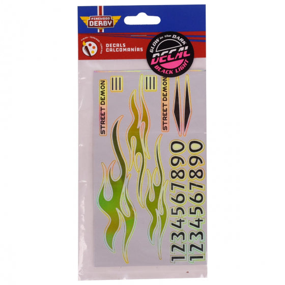 Take your Pinewood Derby car to the next level with this decal set! Nothing makes a car roll faster than some sweet graphics.