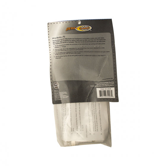 This adjustable tool is designed for use with a hand drill to accurately create new axle holes and a lower center of gravity for your BSA® and Pinewood Derby® car kits. The tool increases the accuracy of the body block by locking all four axle points together in one setting.