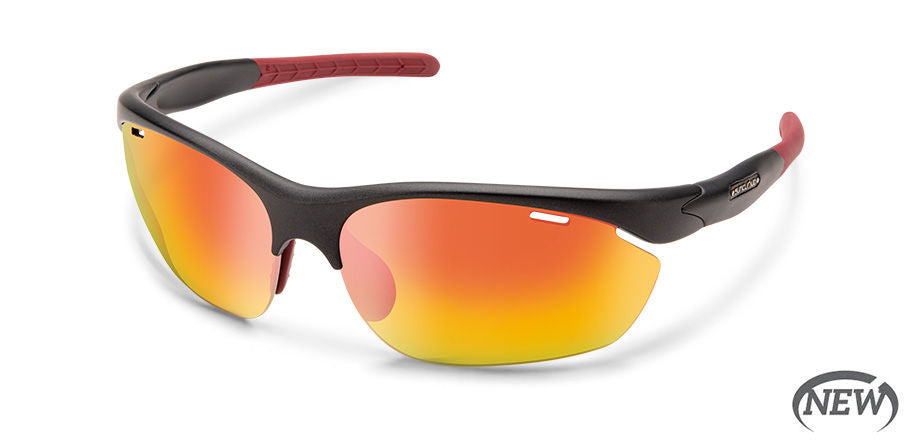 Suncloud's Portal sunglass features anti-fog lens venting and no-slip temple tips. It includes an interchangeable low light Contrast Rose lens and a zippered case for safe storage.Lens width: 66.5Lens height: 44Nose bridge: 17Temple length: 126Frame ColorMATTE GRAPHITELens ColorPOLAR RED MIRROR