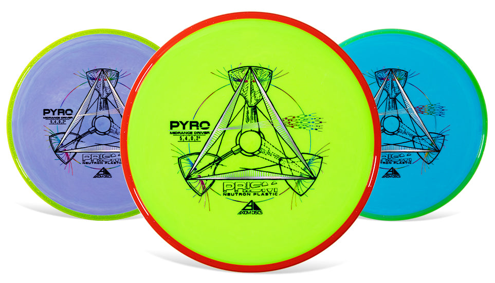 The Prism Pyro is debuting with a stock triple-foil stamp, that in combination with a Proton core and Prism rim produces a stunning dual-toned translucent disc. The Prism Proton Pyro was designed as Axiom’s first overstable Midrange with more glide than the MVP Deflector and a commanding stable finish. The Pyro has enough stability for consistent flights in strong winds and powerful throws without losing its line and turning off target.
