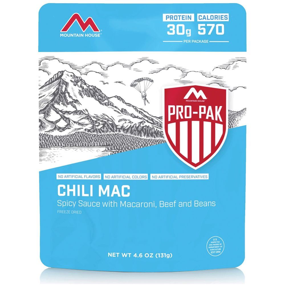 Compact vacuum pouch. Won't expand in high elevations. Takes up less space in your backpack. Hearty 16 oz. serving. Convenience of a stand up zipper pouch. Available in best selling entrees. 0g trans fat except for item #290558 & #290562.