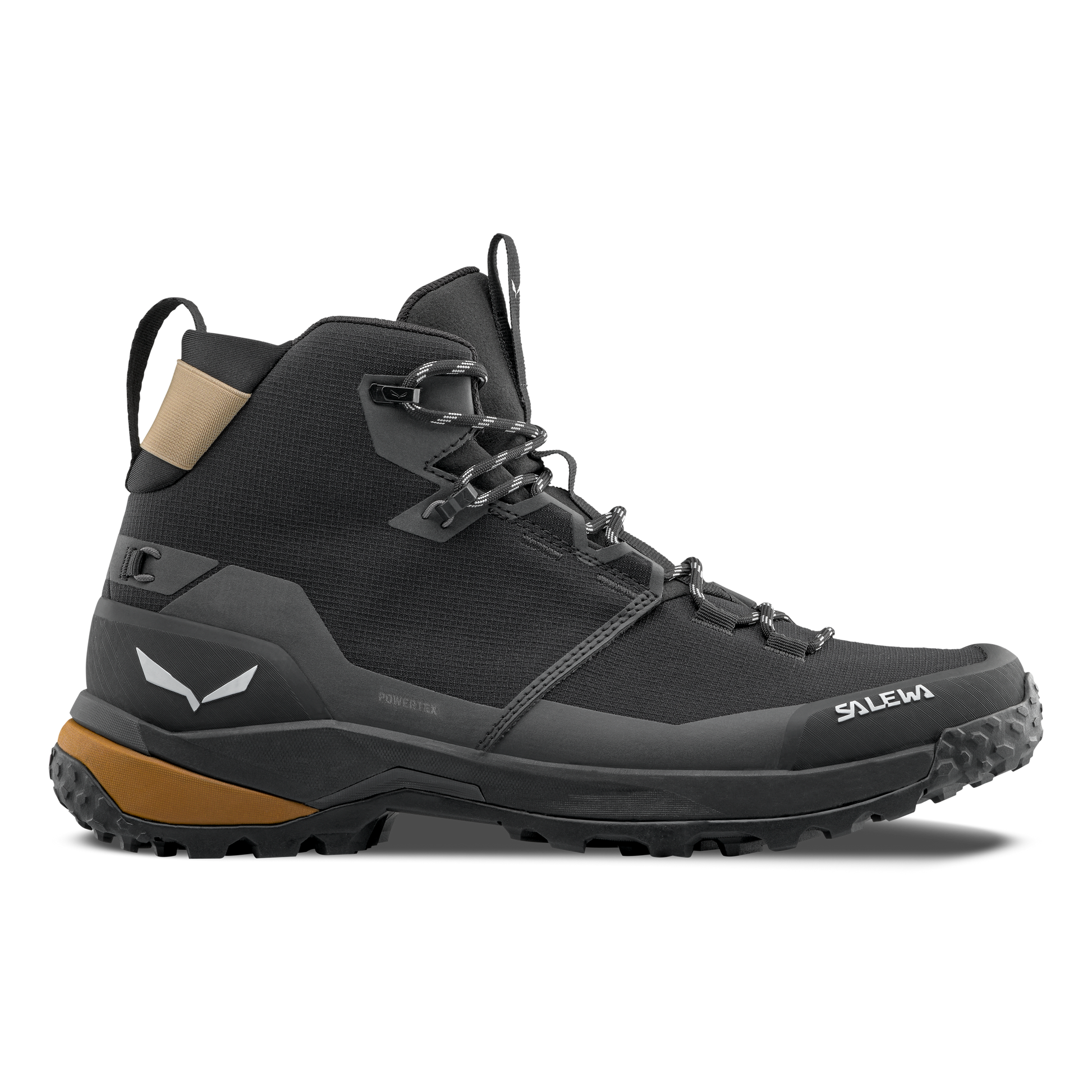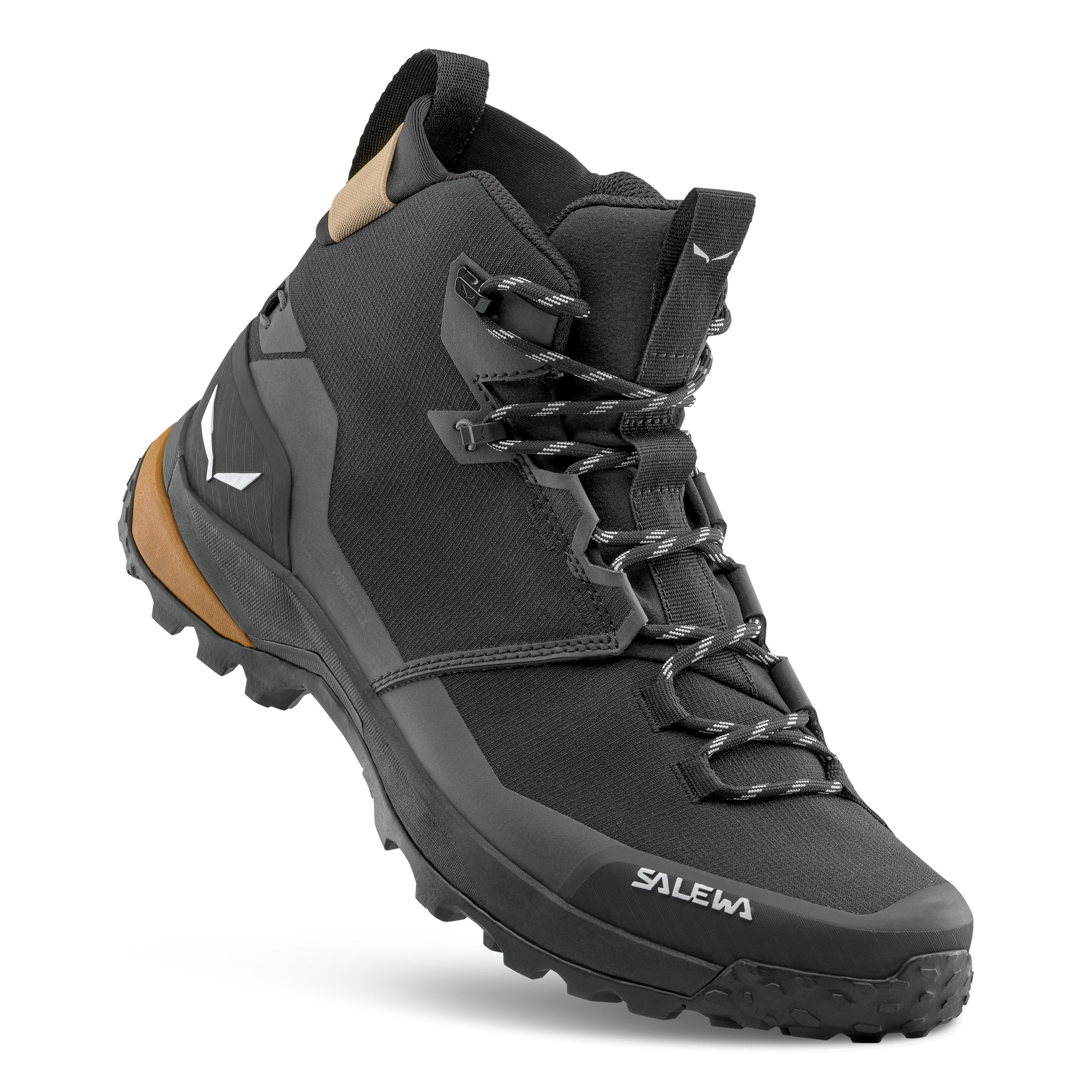 The Puez 2 Mid Powertex has a progressive, aesthetic design that provides smooth roll-off and long-lasting comfort for versatile city use or wild mountain terrain. It has an abrasion-resistant mid-cut upper reinforced with an external toe cap and all-round protective rubber rand with a waterproof and breathable Powertex® membrane. Long-lasting comfort Its dedicated trekking last, dual EVA midsoles with graded stiffness and softer landing heel cushioning and recycled, soft, customizable CFF footbed work with the included Volume Reducer footbed to promote enhanced comfort and a customized fit. Technical & progressive The Puez 2 Mid Powertex has a Pomoca™ Alpine Trekker outsole for grip and traction in technical terrain. At the heart of its construction built into the insole, the new Salewa Edging Plate II, a special thermoplastic frame that runs the entire length of the boot offers a combination of enhanced flex and rebound for long-lasting hiking comfort with specific levels of stiffness and flex at the forefoot, and heel for targeted stiffness, plus increased stability. In addition, the proven Salewa 3F System with Kevlar® cables ensures a supportive fit at the ankle and wrapping midfoot stability. This is further enhanced by the climbing lacing that runs right down to the toe. Sustainable manufacturing This trekking boot bears the Salewa Committed icon and meets our strict criteria for additional sustainability and environmentally-friendly manufacturing. In addition, the covering on the recycled, customizable CFF footbed is made of recycled mesh and the waterproof, breathable membrane is PFC-free
