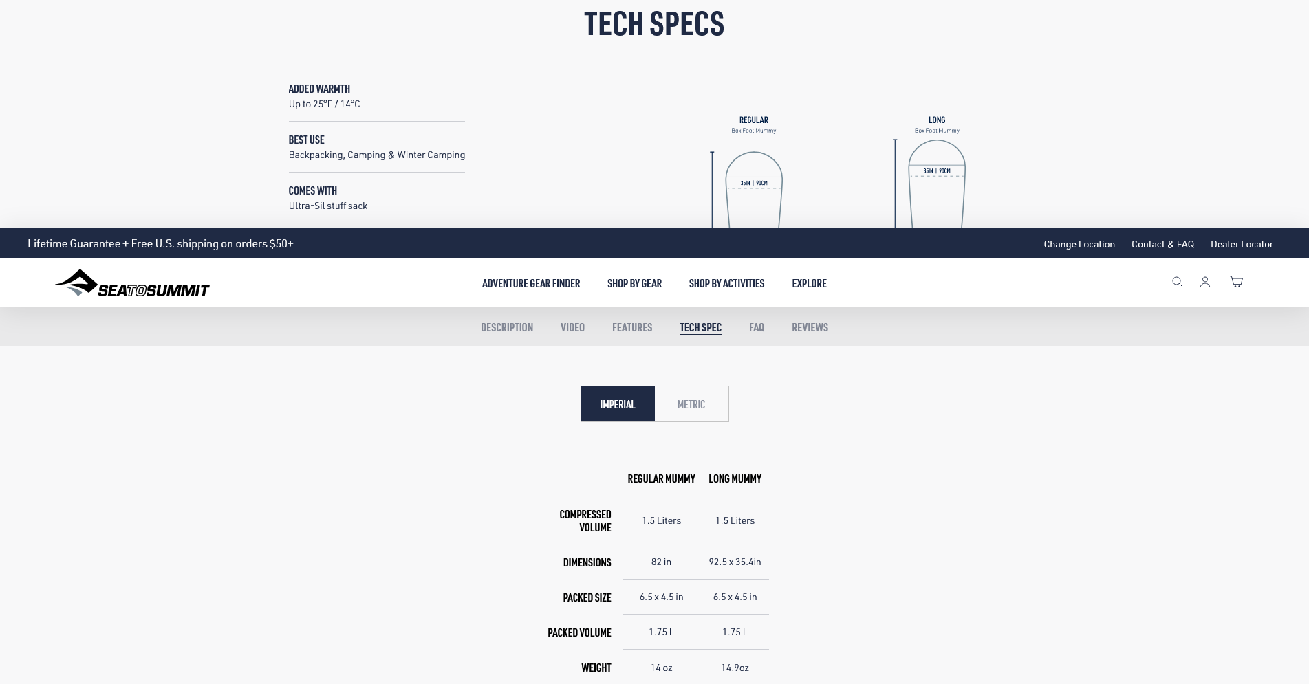 BEST USE: Backpacking & CampingWEIGHT: 14.9oz | 422gLENGTH: 7 ft 8 in | 235 cmPACKED SIZE: 6.5 x 4.5 in | 17 x 11.5 cm