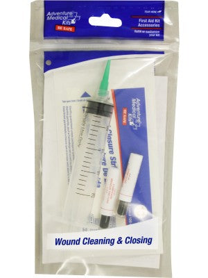 Refill or customize your first aid kit with what you need to clean and close a wound. Wound irrigation tool with 18 gauge tip provides a powerful steam to flush dirt and other contaminants from a wound before closing. Wound closure strips are specifically designed to provide needed tension to close wound edges after irrigation. 4” length can be cut down to the right size while pack of ten provides ample strips to get the job done. Tincture of benzoin is used on the unbroken skin to enhance the adhesion of wound closure strips.