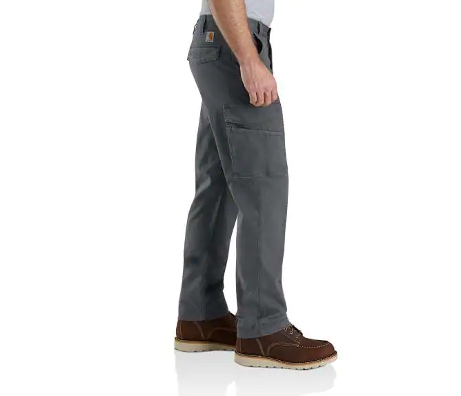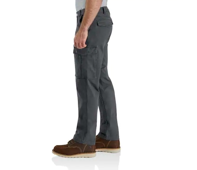 Men's midweight canvas cargo pants that move with you, not against you. These men's cargo pants have enough flex that you can easily crouch down to fix a busted tail light. Plus, the durable midweight canvas can handle kneeling, squatting, and crawling through brush. They've got side, back, and cargo pockets, including secure storage for your phone.