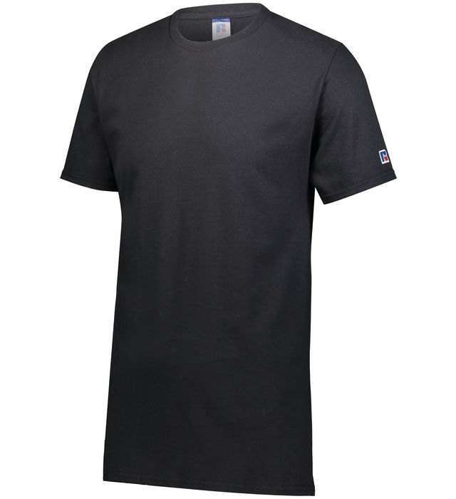 Description: Featuring superior softness, the Adult Cotton Classic Tee from Russell Athletic® is perfect for cheering on your favorite team all season! With set-in sleeves, a tear away label, and a rib-knit collar, this tee is easily the most comfortable choice in the stands.