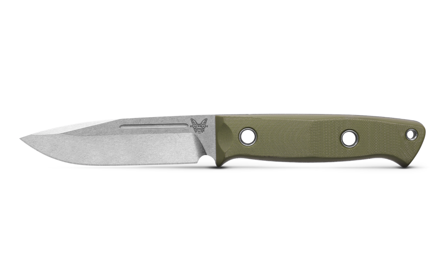 Wilderness survival can hinge on the tools you carry and the 163-1 Bushcrafter is a fresh take on the classic outdoor bushcrafting knife, the most important tool in your kit. With a 4.38” premium stainless steel fixed blade and durable all-weather OD Green G10 handle scales with a Red G10 base layer, the 163-1 Bushcrafter is purpose-built for all manner of heavy duty outdoor tasks including feather sticking, batoning, shelter building as well as food prep. Redesigned with updated blade geometry and handle ergonomics, keep it close by in its belt-carry leather sheath with ferro rod attachment