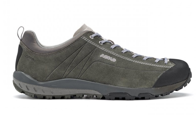 Fast hiking on mixed terrain, multi-sport and travel. It features a water-resistant suede upper offering lightness, protection, comfort and performance, while the Gore-Tex Extended Comfort Footwear lining guarantees waterproofness and breathability. The midsole is composed of an Eva density that gives support, comfort and cushioning. The Asolo/Vibram A-Sport outsole uses the MegaGrip compound and ensures the best performance, grip on all types of terrain, durability and self-cleaning action. To complete the model, the toe rubber cap for further front protection and the holes lacing system for a fast and precise lace up.